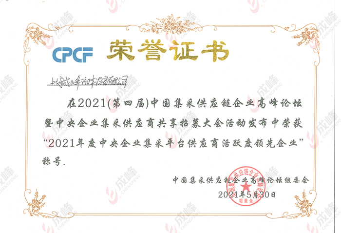2021年度中央企業(yè)集采平臺供應(yīng)商活躍度領(lǐng)先企業(yè)